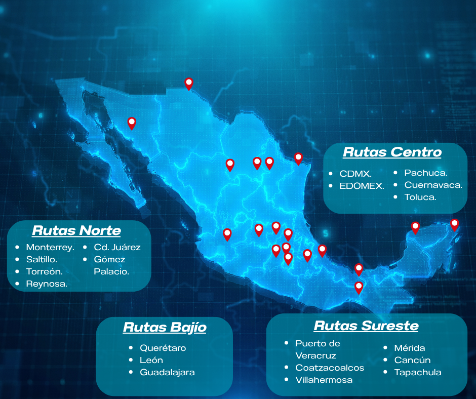 En Drakkar México ofrecemos soluciones de transporte terrestre confiables y seguras para tu carga. Operamos con bases en Veracruz y Ciudad de México, conectando los principales corredores logísticos del país con eficiencia, puntualidad y respaldo en seguridad.
